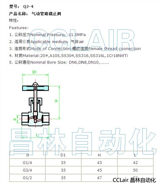 QJ-4,氣動管路截止閥