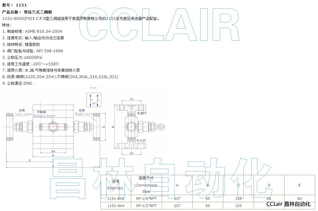 1151-6K2,1151-6K4,雙法蘭式三閥組