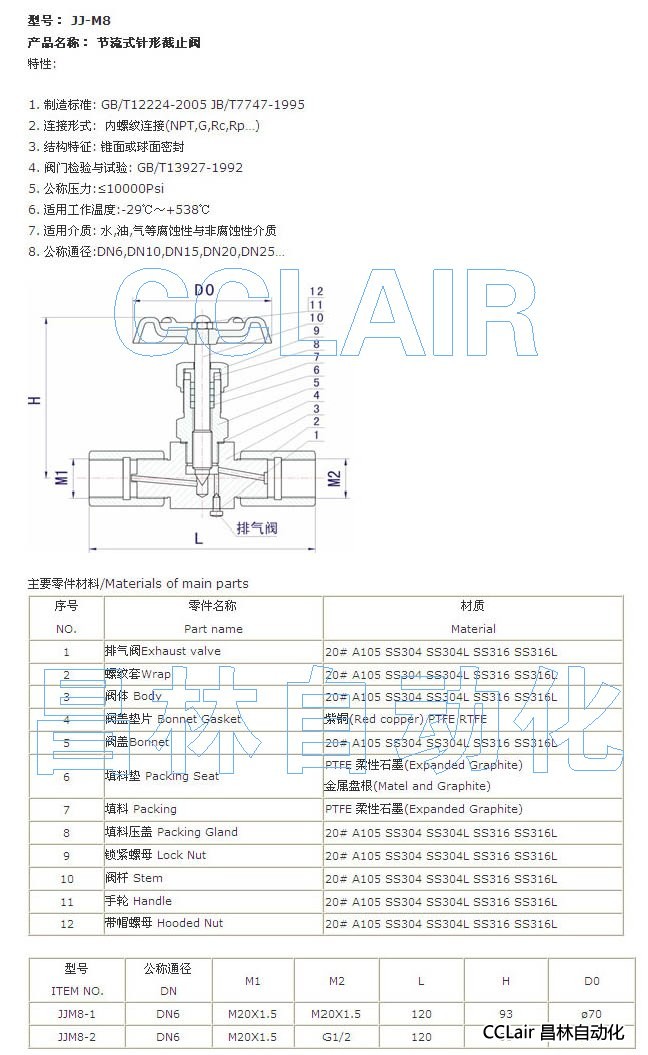 詳細(xì)信息 JJM8-1,JJM8-2, 節(jié)流式針形截止閥