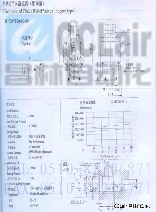 HTXDYF20-00-00,先導(dǎo)式單向溢流閥(錐閥型)