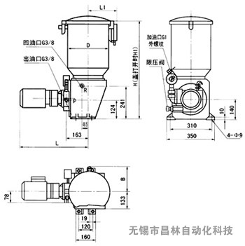 (3)雙泵帶電動換向閥潤滑裝置外形尺寸