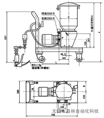 (1)潤滑泵的外形尺寸 (2)帶小車潤滑裝置外形尺寸