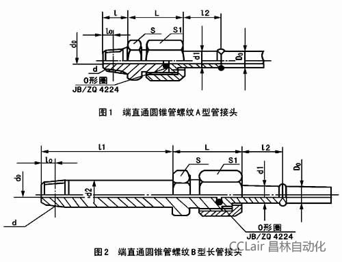 2、管子外徑D0為10mm的焊接式端直通圓錐管螺紋B型長管接頭;