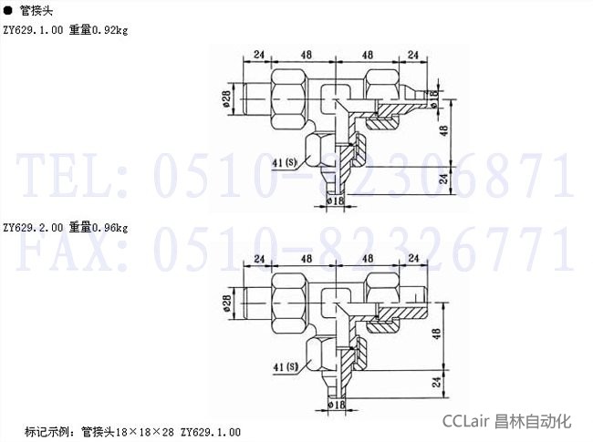 標(biāo)記示例:管接頭R1/4 ZY623.1.00