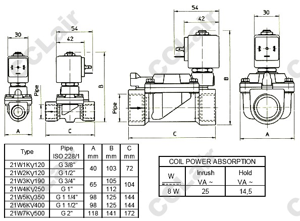 21W1KV120,21W2KV120,21W3KV190,21W4KV250,21W5KV350,21W6KV400,21W7KV500,意大利ODE兩位兩通銅電磁閥