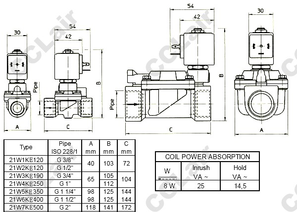 21W1KE120,21W2KE120,21W3KE190,21W4KE250,21W5KE350,21W6KE400,21W7KE500,意大利ODE兩位兩通銅電磁閥