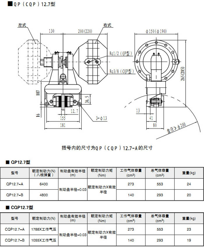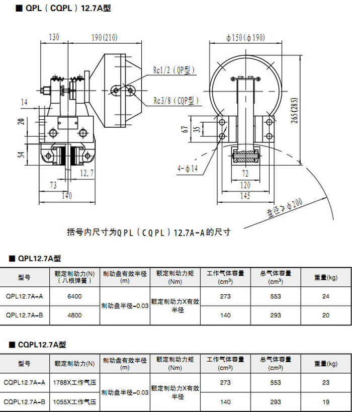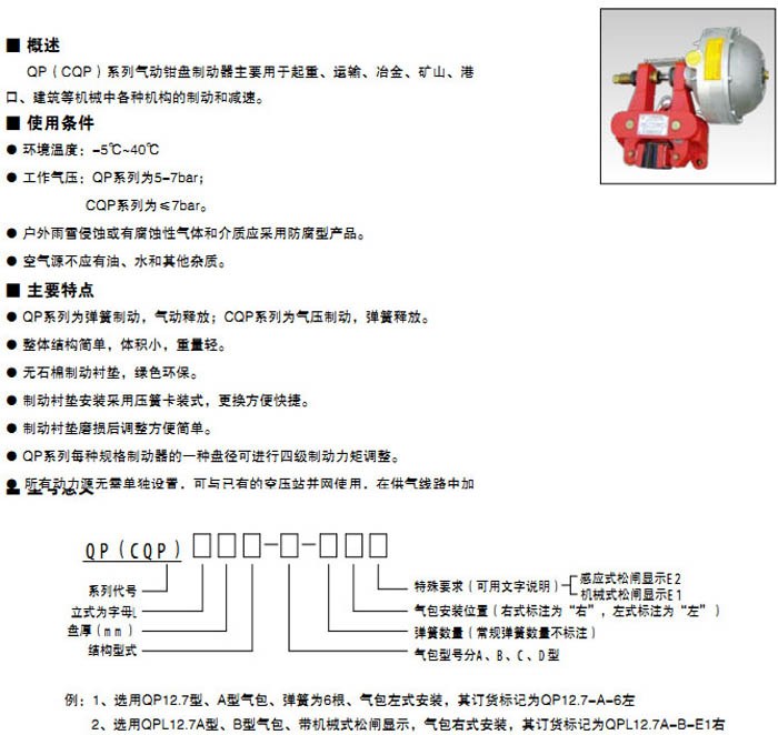 詳細(xì)信息 CQP12.7-A,CQP12.7-B,QPL12.7A-A,QPL12.7A-B,CQPL12.7A-A,氣動(dòng)鉗盤式制動(dòng)器