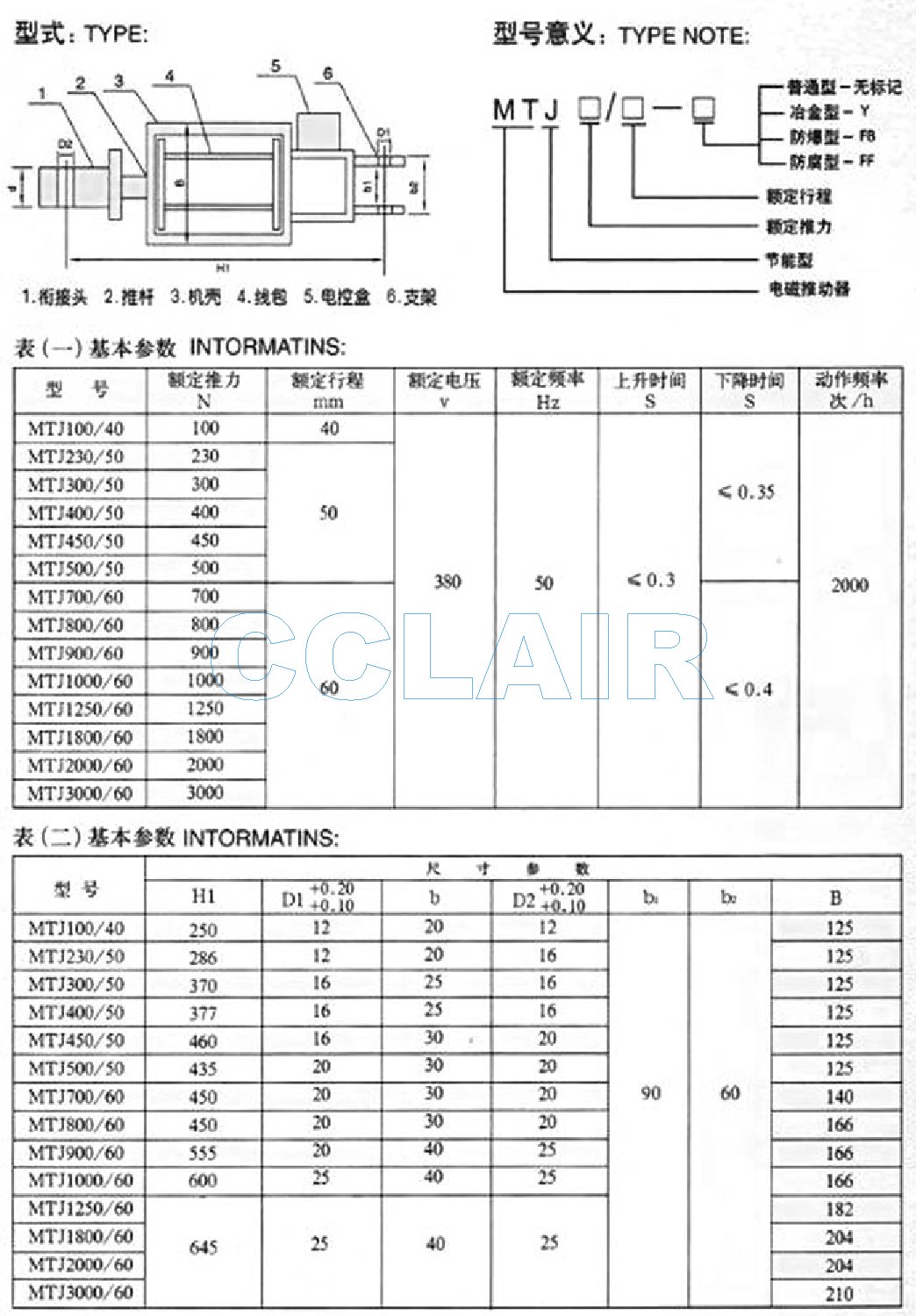MTJ800/60,MTJ900/60,MTJ1000/60,MTJ1250/60,MTJ1800/60,MTJ2000/60,MTJ3000/60,長行程電磁推動器