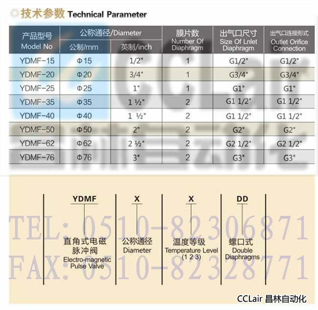 詳細(xì)信息 YDMF-15,YDMF-20,YDMF-25,YDMF-35,淹沒(méi)式電磁脈沖閥