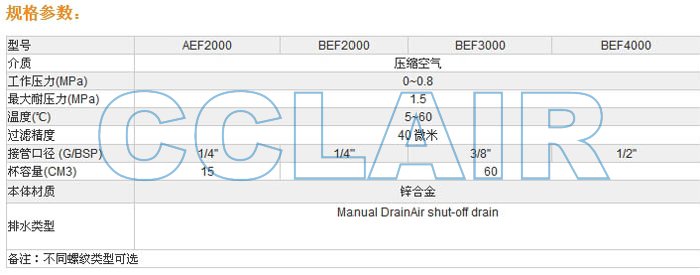 詳細(xì)信息 AEF2000,AEF3000,AEF4000,BEF2000,BEF3000,BEF4000,氣源處理件