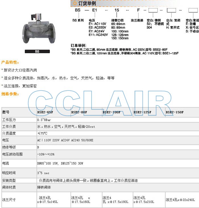 詳細信息 BSE1-65F,BSE2-65F,BSE7-80F,BSE11-80F,BSE1-100F,BSE2-125F,BSE1-150F,電磁閥