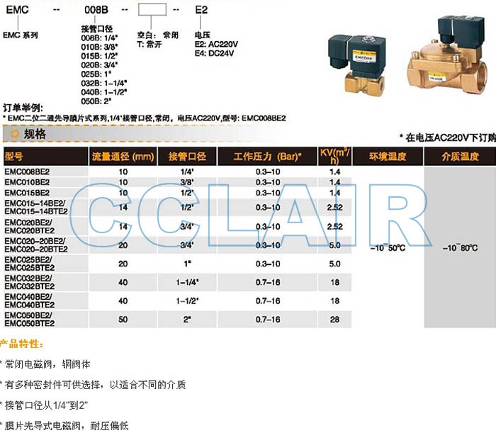 詳細(xì)信息 EMC008BE4,EMC010BE4,EMC015BE4,EMC020BE4,EMC025BE4,EMC032BE4,先導(dǎo)膜片式電磁閥