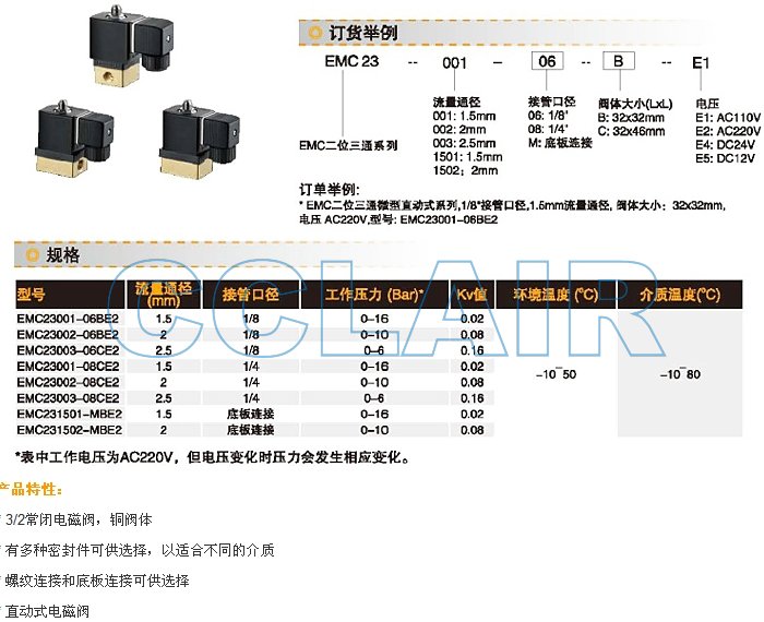 詳細(xì)信息 EMC23001-06,EMC23002-06,EMC23003-08,EMC231501-08,EMC231502-M,EMC23003-M,電磁閥