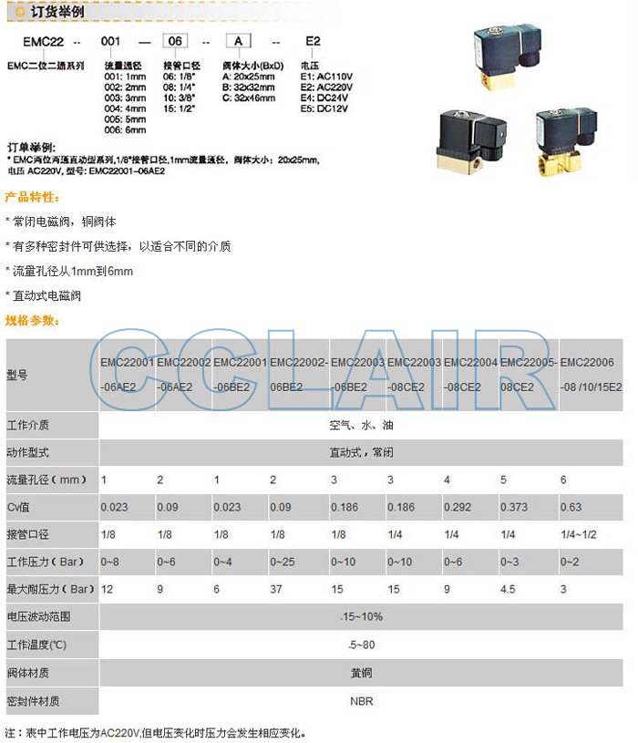 詳細信息 EMC22001-10,EMC22002-10,EMC22003-10,EMC22004-10,EMC22005-10,EMC22006-10,電磁閥