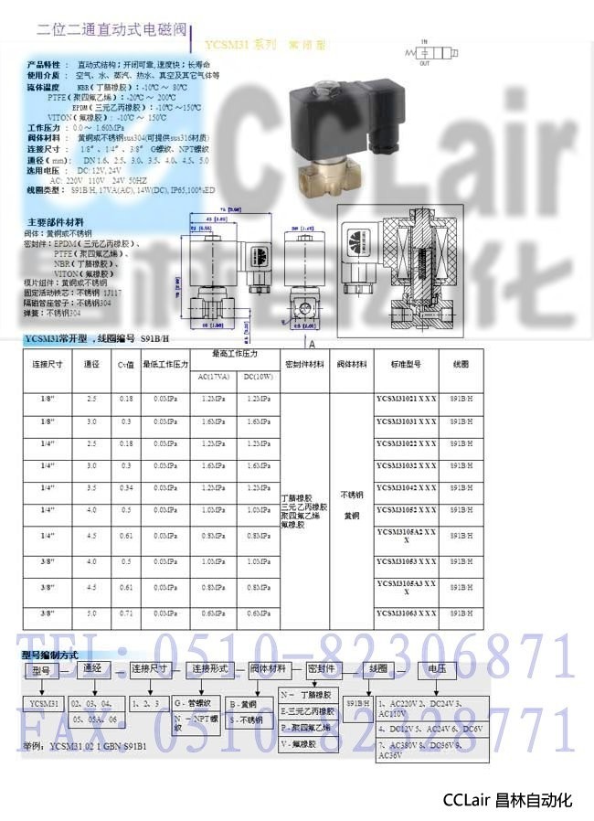 YCSM31052,YCSM31053,YCSM3105A1,YCSM3105A2,二位二通直動式電磁閥