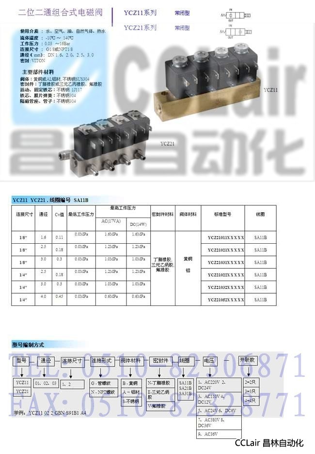 YCZ21011,YCZ21012,YCZ21021,YCZ21022,YCZ21031,YCZ11031,組合式電磁閥