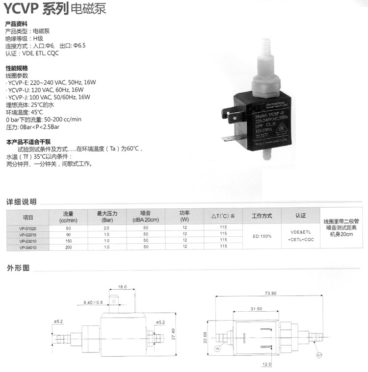詳細(xì)信息 VP-01020,VP-02015,VP-03010,VP-04010,電磁泵