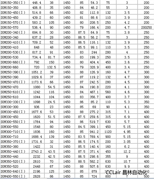 SOW350-520,SOW350-640(Ⅰ),SOW400-550(Ⅰ),SOW400-550,SOW400-600(Ⅰ),