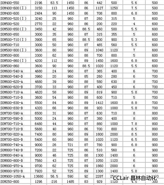 SOW150-450,SOW150-570(Ⅰ),SOW150-570,SOW200-340(Ⅰ),SOW200-340,