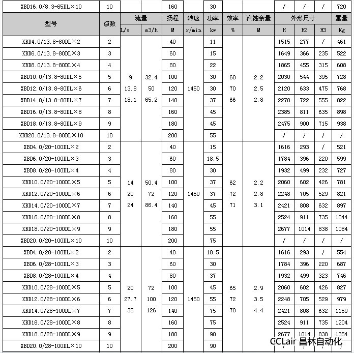 XBD12.0/28-100DL×6,XBD14.0/28-100DL×7,XBD16.0/28-100DL×8,