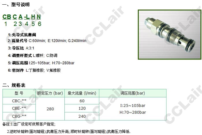 詳細(xì)信息 CBCA-LHN,CBEA-LHN,CBGA-LIN,CBCA-CIN,CBEA-CHV,CBGA-CHV,CBEA-LIV,CBGA-LIV,抗衡閥