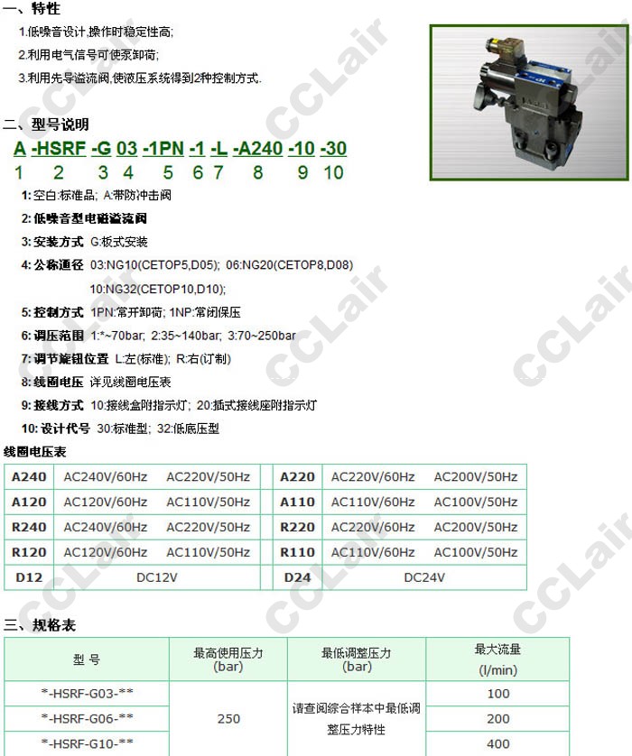 A-HSRF-G03-1PN-1-A240-10,A-HSRF-G06-1NP-2-A240-10,低噪音電磁溢流閥