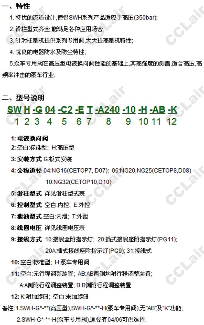 型號: SWH-G04-C2,SWH-G06-N2,SWH-G10-C2BS,SWH-G04-N2-ET-A240-10,SWH-G06-C5S-ET-A240-10,電液換向閥