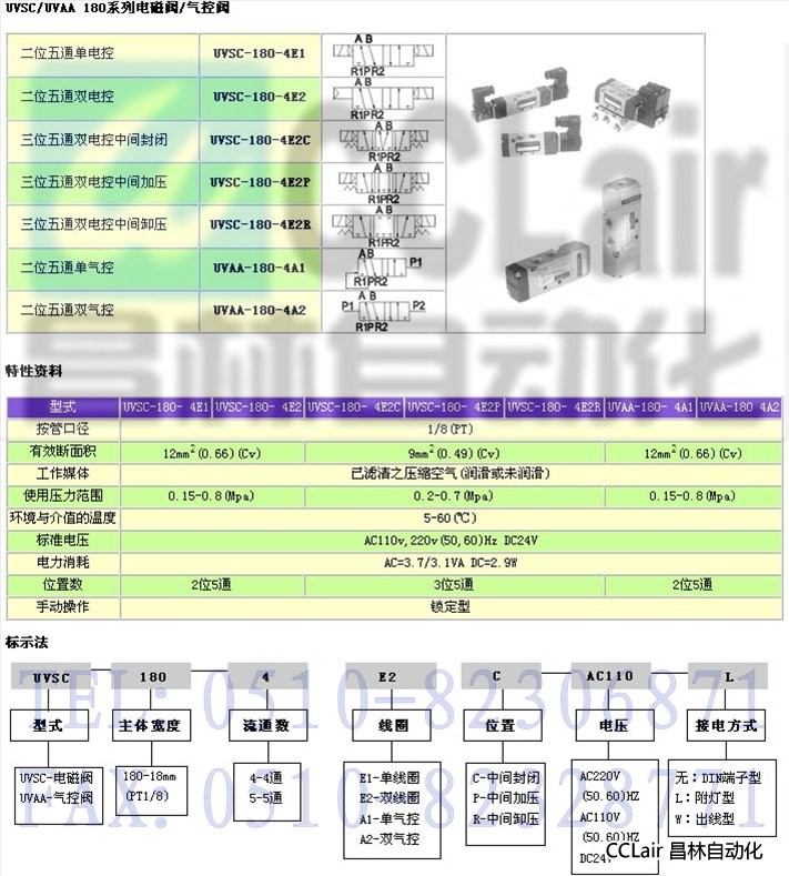 詳細信息 UVSC-180-4E1,UVSC-180-4E2,UVSC-180-4E2C,UVSC-180-4E2P,UVSC-180-4E2R,電磁閥