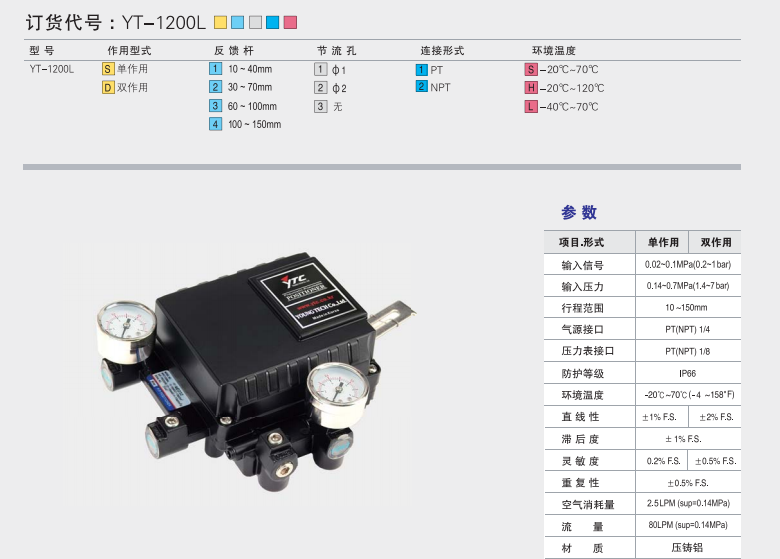 YT-1200LS1,YT-1200LS2,YT-1200LS3,YT-1200LS4,氣動(dòng)閥門定位器