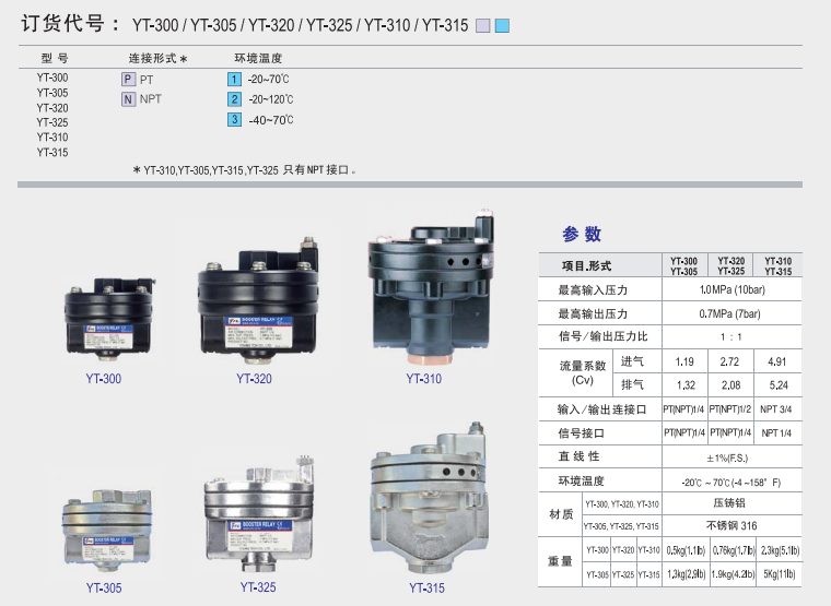 YT-300P1,YT-300P2,YT-300P3,YT-300N1,YT-300N2,YT-300N3,氣動放大器