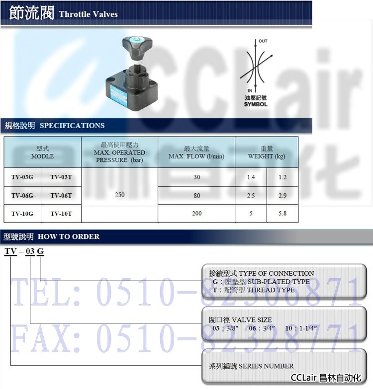 詳細信息 TV-03G,TV-03T,TV-06G,TV-06T,TV-10G,TV-10T,節(jié)流閥
