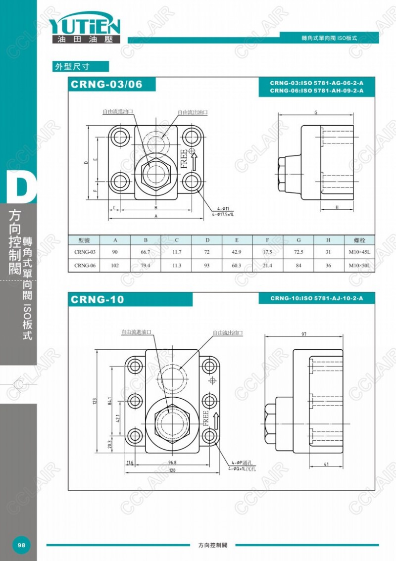 YUTIEN油田 轉(zhuǎn)角式單向閥CRNG-03-05,CRNG-03-50,CRNG-06-05,CRNG-06-50,CRNG-10-05,CRNG-10-50