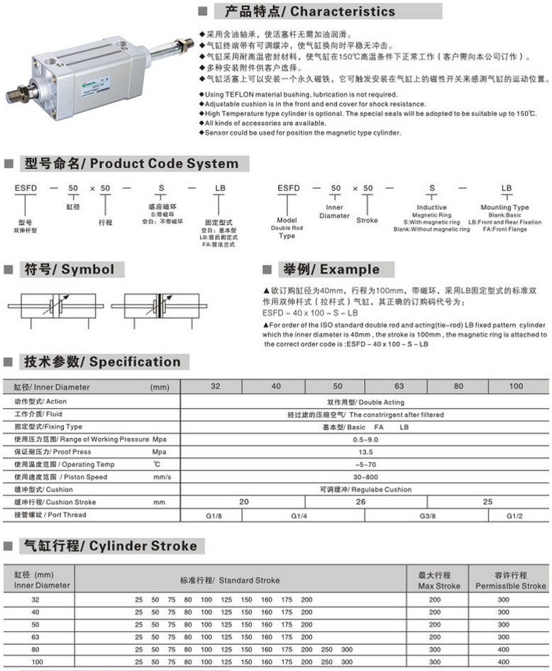 ESFD-32*25-S,ESFD-40*50-S,ESFD-50*75-S,ESFD-63*80-S,ESFD-80*100-S,標(biāo)準(zhǔn)氣缸