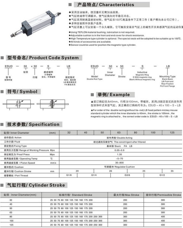 型號: ESUD-32*25-S,ESUD-40*50-S,ESUD-50*75-S,ESUD-63*80-S,ESUD-80*100-S