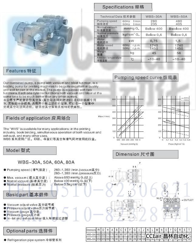 WBS-30A,WBS-50A,復合型真空泵 |