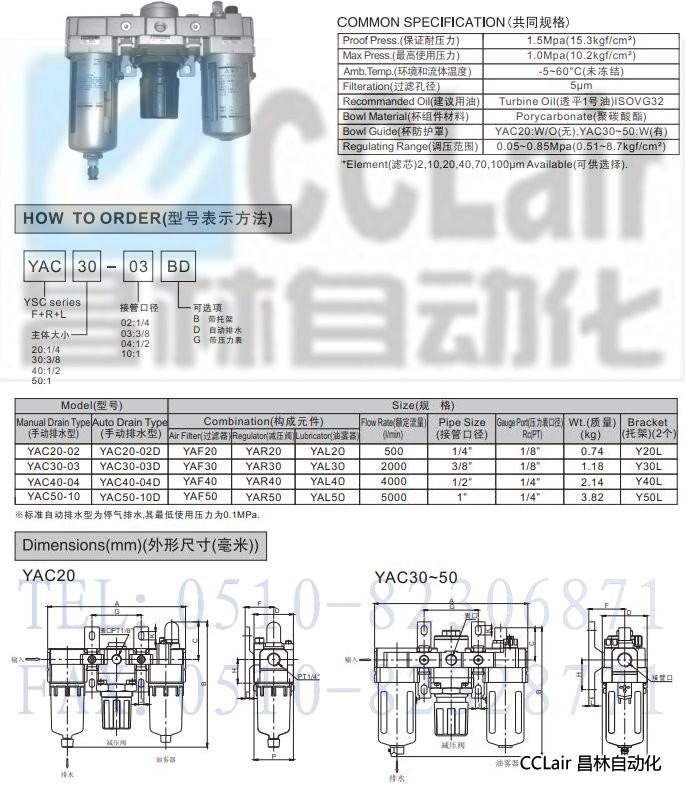 YAC20-02,YAC30-03,YAC40-04,YAC50-10,空氣過濾組合