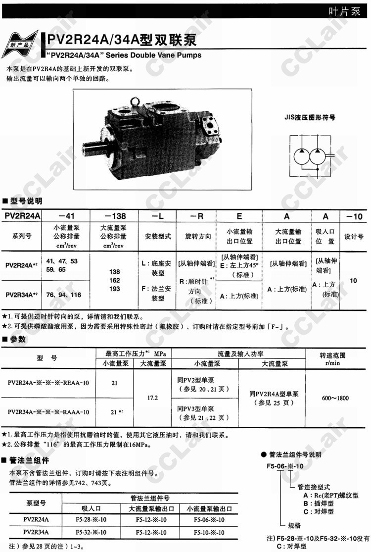 PV2R24A,PV2R34A,PV2R24A-41-138-L-REAA-10,PV2R34A-116-193-F-RAAA-10,雙聯(lián)泵