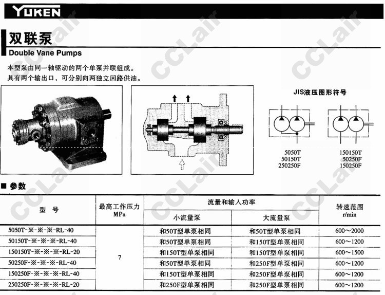 5050T,50150T,150150T,50250F,150250F,250250F,雙聯(lián)泵,YUCIYUKEN榆次油研