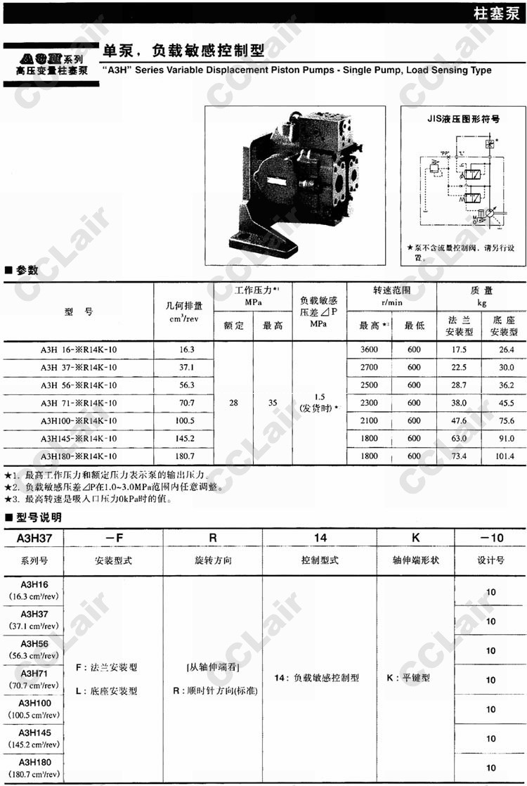 A3H16,A3H37,A3H56,A3H71,A3H100,A3H145,A3H180,A3H16-FR14K-10,高壓變量柱塞泵 |