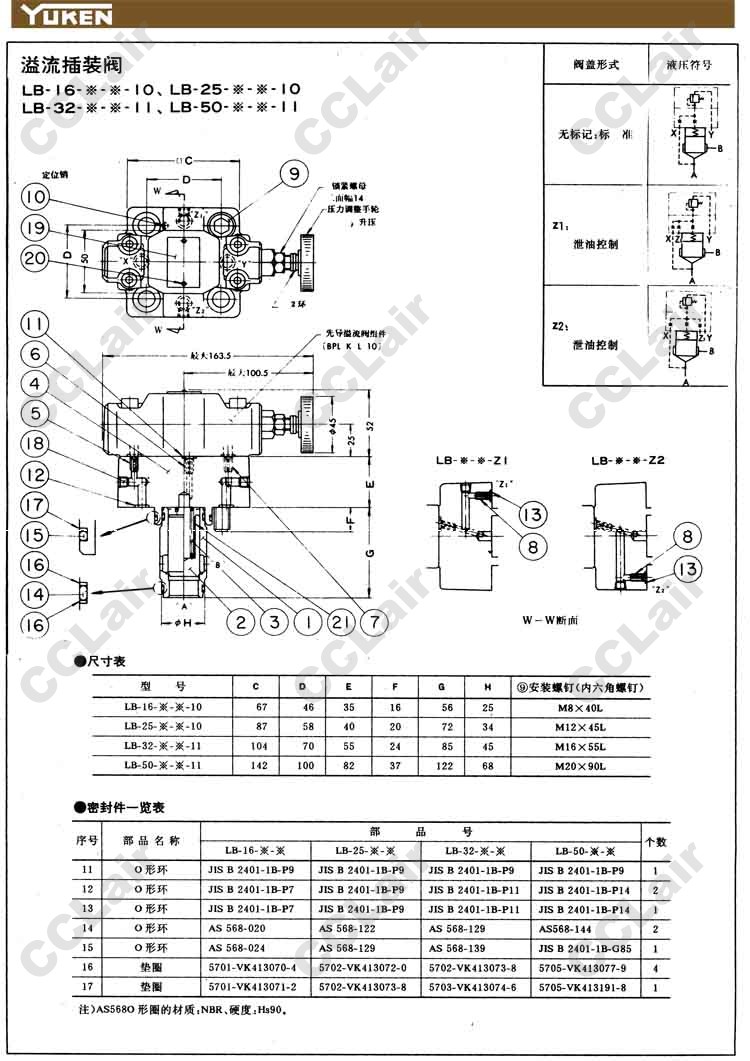 LB-16,LB-25,LB-16-V-Z1-10,LB-25-V-11,LB-16-V-Z2-10,YUKEN,溢流插裝閥