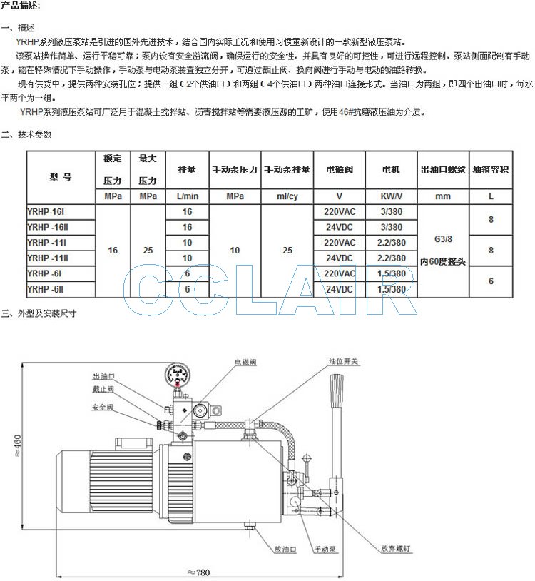 詳細(xì)信息 YRHP-16I,YRHP -16II,YRHP -11I,YRHP -11II,YRHP-6I,YRHP-6II,液壓站