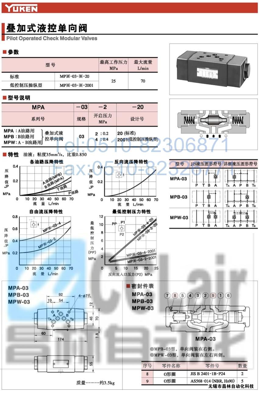 MPW-03-2-20,MPW-03-4-20,MPW-03-2-2001,疊加式液控單向閥,榆次油研疊加式液控單向閥,YUKEN疊加式液控單向閥