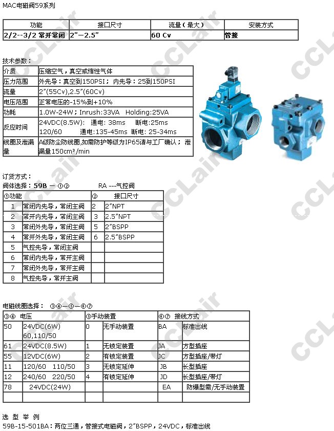 型號: 59B-12-500BA,59B-22,59B-23,59B-42,59B-52,59B-75,59B-78,59B-13,59B-26,59B-46,59B-63,電磁閥
