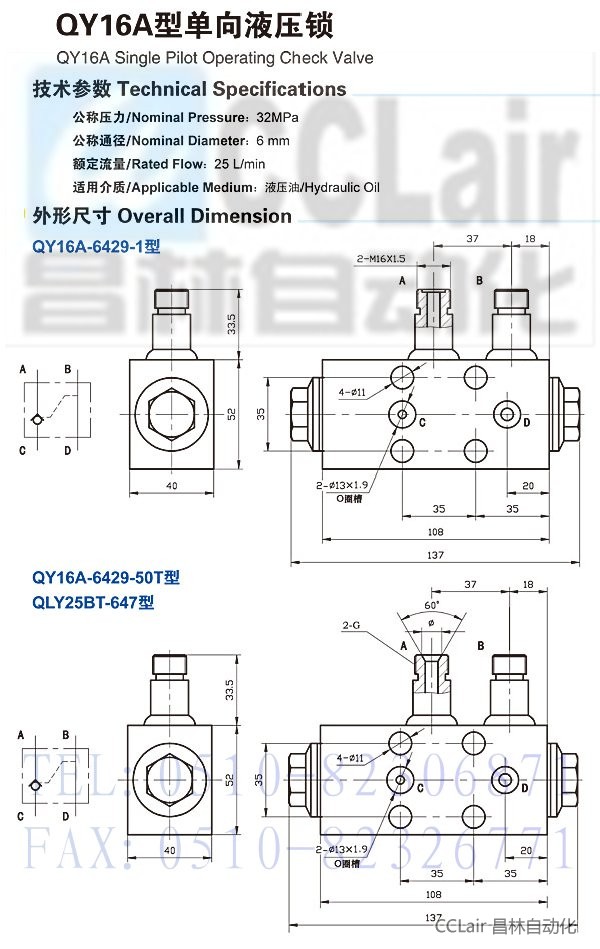 QY16A-6429-1,QY16A-6429-50T,單向液壓鎖,生產(chǎn)廠家,價格