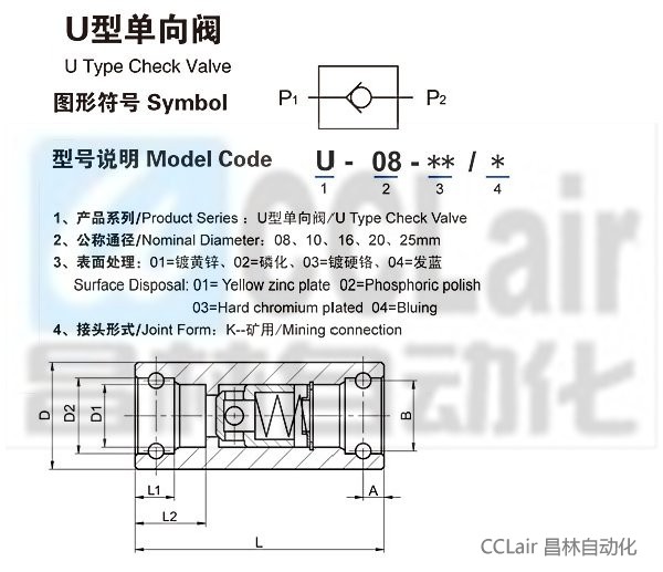 » U-08,U-10,U-16,U-20,U-25,單向閥