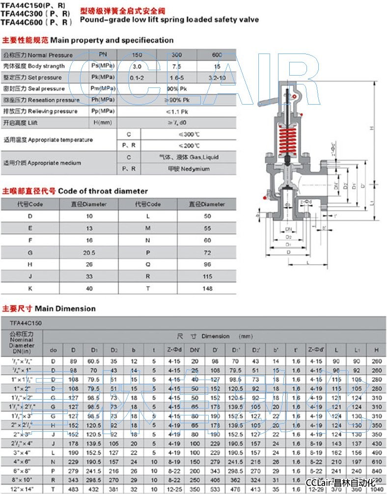 TFA44C150,TFA44C300,TFA44C150P,TFA44C300P,TFA44C150R,TFA44C300R,彈簧全啟式安全閥