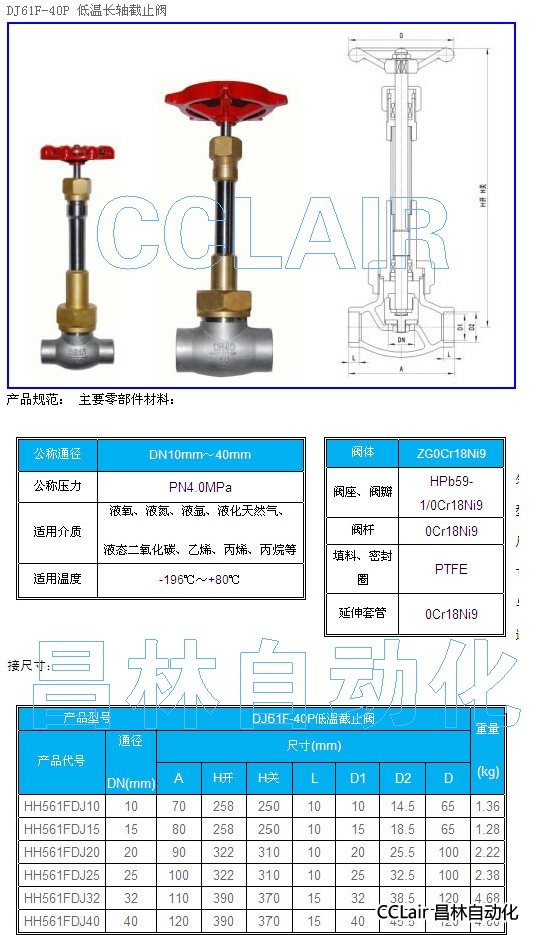 產(chǎn)品: 瀏覽次數(shù):555DJ61F-40P,低溫長軸截止閥