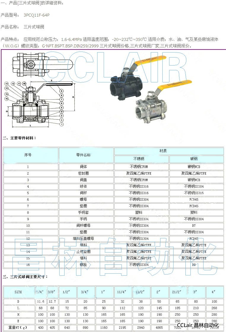 產(chǎn)品: 瀏覽次數(shù):6533PCQ11F-64P,三片式球閥