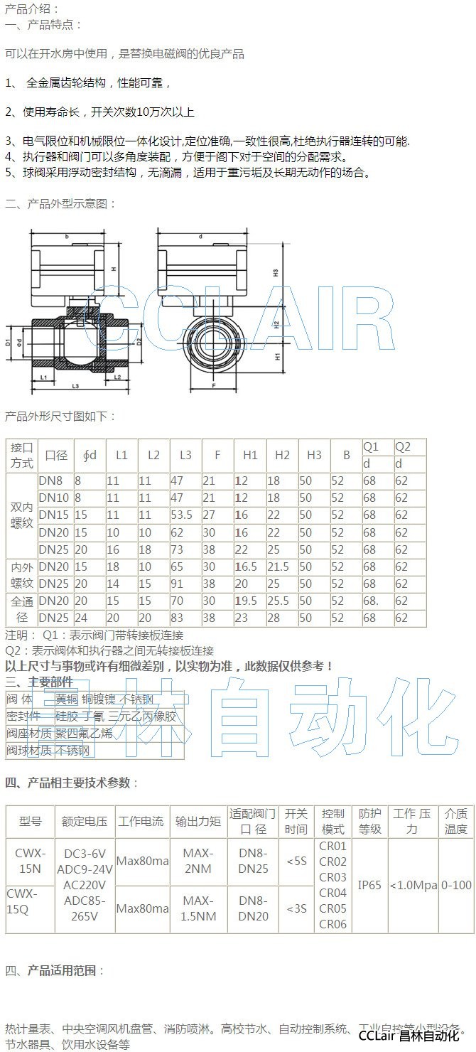 詳細(xì)信息 CWX-15Q-DN8,CWX-15Q-DN10,CWX-15Q-DN15,CWX-15N-DN20,CWX-15N-DN25,微型電動(dòng)球閥