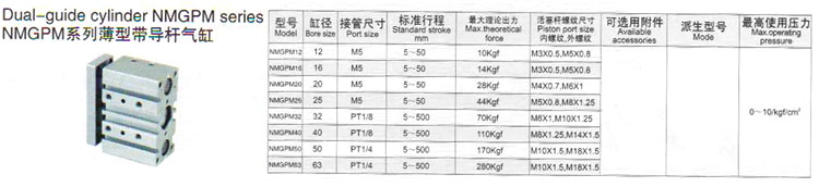 NMGPM12,NMGPM16,NMGPM20,NMGPM25,NMGPM32,NMGPM40,NMGPM50,NMGPM63,薄型帶導桿氣缸